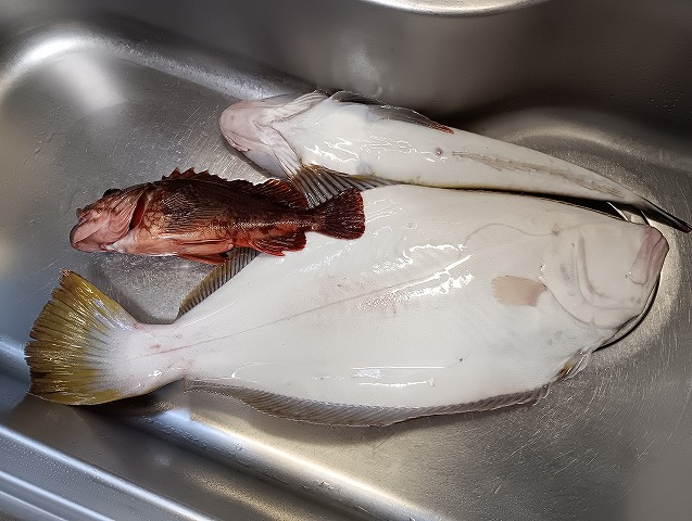 本日の釣果。ヒラメはいつものようにフライです。
