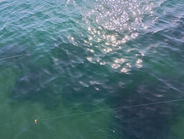 写真だとわからないのですが、かなりの数のサヨリが泳いでます。 |